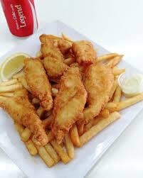 with beer battered fish , crumbed calamari rings, prawn cutlet, scallop & lemon , tartare sauce