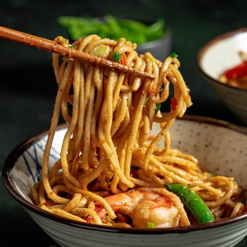 cooked with chicken,carrot, cabbage, onion, zucchini in garlic sauce